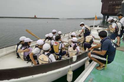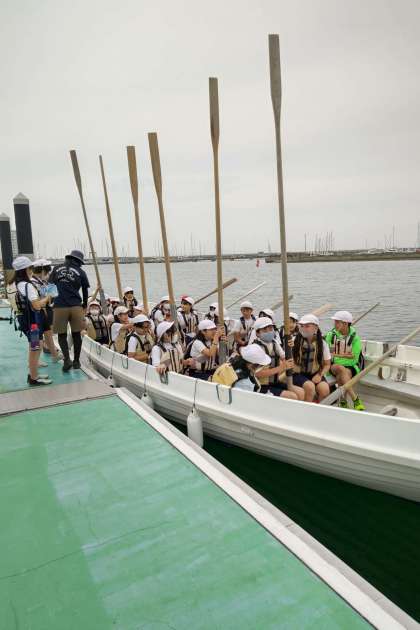 カッターに乗り込みます。