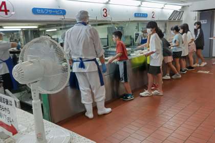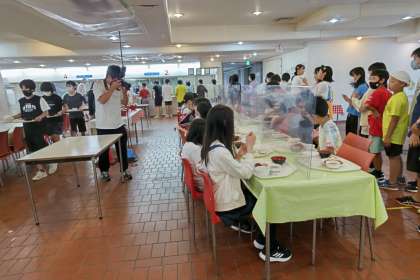 「砂の造形」やカッター漕艇など、たくさんの活動をしたので、みんなお腹ペコペコです。