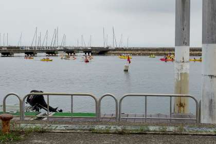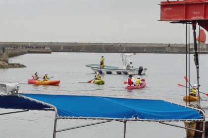 ボートに乗った指導員さんが、アドバイスしてくれます。