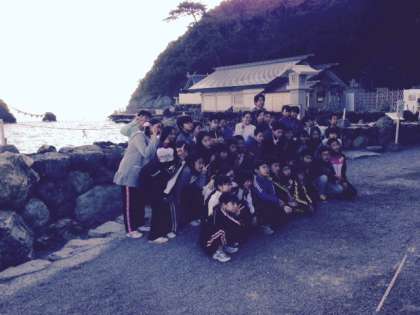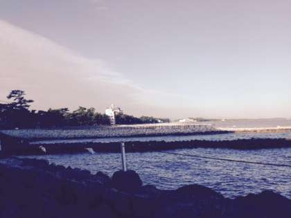 ◆ 午前6時50分。今朝もまた気持ちの良い青空が広がっていました。波音に心を和ませながら朝の散歩をしました。最後に雄大な伊勢の海の景色をバックに思い出の記念撮影をしました。
