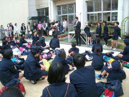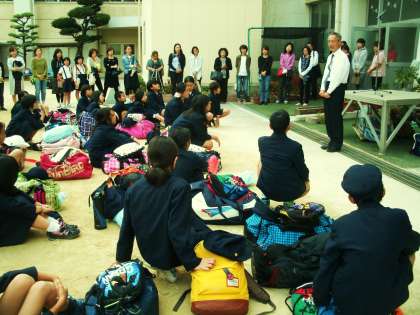 午後4時15分。6年生が一泊二日の三重県二見・鳥羽方面での修学旅行終えて全員無事に帰ってきました。