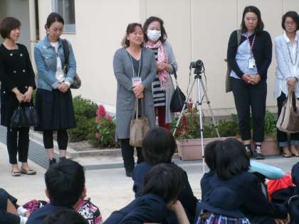 運動場での帰校式では、校長先生から「修学旅行の思い出は家族の方に沢山話してください。それがお土産話です」と話されました。今夜は6年生のご家庭では旅行の土産話に花が咲いていることでしょう