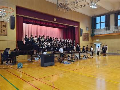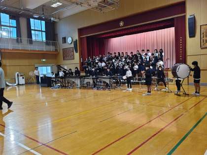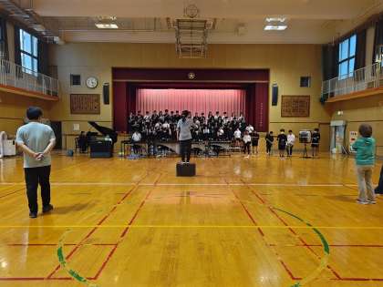 これまで音楽室で「創立150周年記念式典」で披露する合奏の練習をしてきましたが、今日から講堂で練習をします。心を一つに頑張っています!