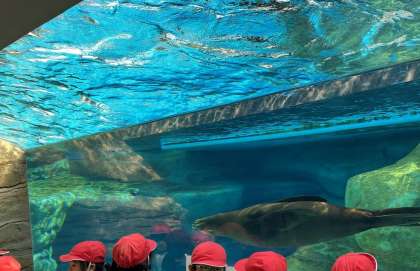 「ペンギンパーク&アシカワーフ」では,下からペンギンやアシカが泳いでいる様子を見ることができました。