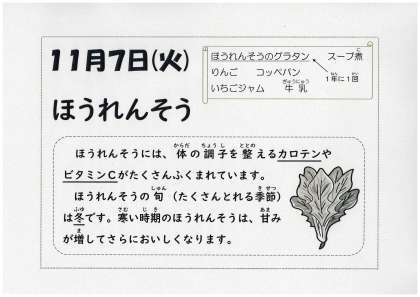 写真下…給食カレンダー