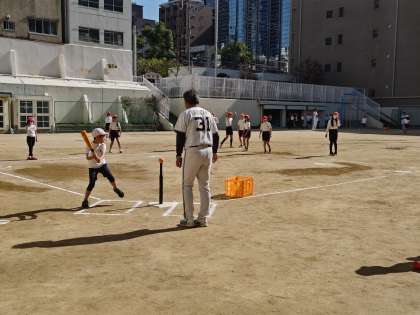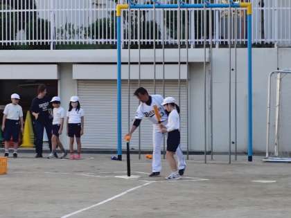 オリックスバッファローズの球団OBの方に,「Tボール教室」をしていただきました。