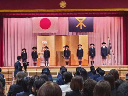 「創立150周年記念式典」では,ご寄贈いただいた品のご披露や令和6年度の新入生から採用される新標準服の披露もありました。