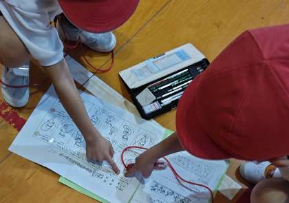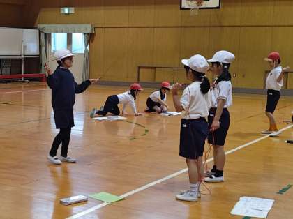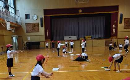 「中大江スポーツの日」にPTAからいただいた短なわを使って、なわとびの練習に励んでいます。体育の時間や休み時間に、「なわとびがんばりカード」に載っている色々な跳び方に挑戦しています。