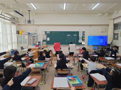 12月1日(金)1年算数「どちらがおおい どちらがひろい」2