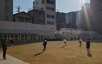 寒さに負けず,運動場やバスケットコートで遊ぶ姿が見られました。みんなとっても元気です!
