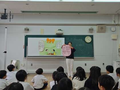 最初に,兄弟げんかを例にして,怒りを感じたときにどのようにすればよいのか,養護教諭からお話を聞きました。その後,身長と体重を測定しました。発育測定の結果については,後日お渡しします。