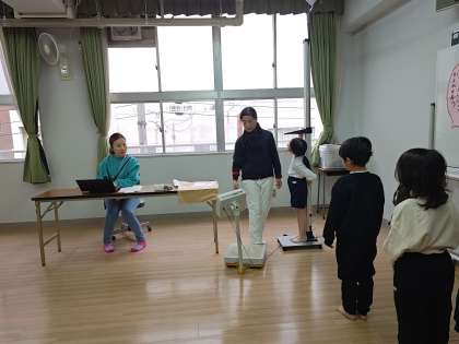 1月10日(水)に6年生から始まった「発育測定」が終わりました。最終日の今日は,1年生の発育測定でした。