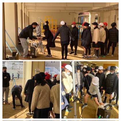 1時間目には先生がいない教室を想定して自分たちで動いて安全を確保する訓練を行い、