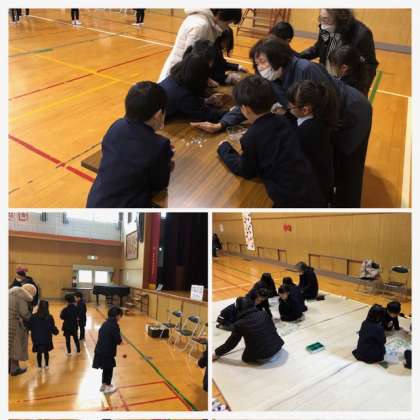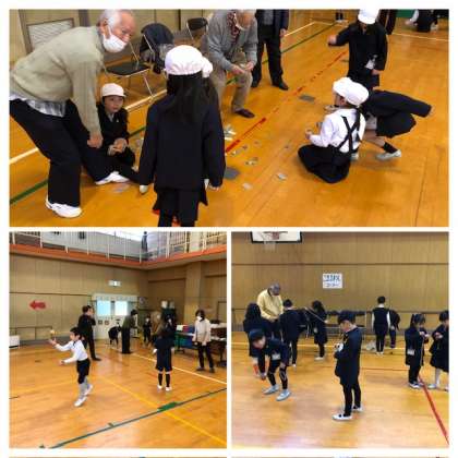 1年生は2、3時間目に地域の皆さんから昔遊びを教わりました。