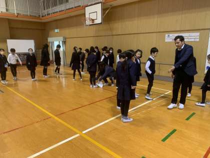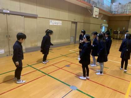 また、中国の遊び(ゴムとび)を友達と声を掛け合いながら、楽しそうにしていました。