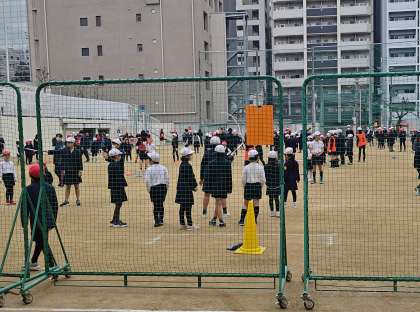 たてわり班活動の一環で「なわとび集会」を行いました。児童数が増え、一度に全校児童が運動場に出ることができないため、今朝は赤チームと橙チームが大なわとびに挑戦しました。
