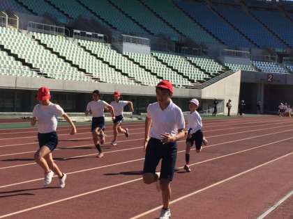 晴天に恵まれた秋の一日。6年生は早朝から長居陸上競技場や球技場で行われた大阪市スポーツ交歓会に参加しました。広い競技場で、他校の児童と勝敗を競って一喜一憂した思い出は、また一つ心のアルバムに楽しい思い出として刻まれたことでしょう。
