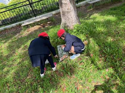 天守閣たんけんチームと公園たんけんチームが前後半入れ替わりで活動します。