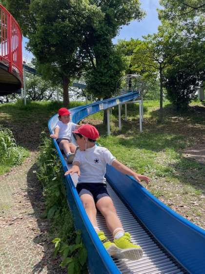 食後に公園で遊んでいます。