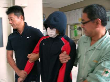 ○下:職員室でさすまたの正しい使い方の実演指導。中途半端な威嚇はかえって危険と のことです。