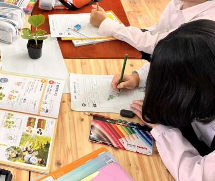 理科の学習で「ひょうたん」の苗の観察をしています。