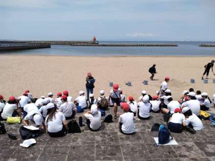 砂の造形とカッター漕艇を交互に行います。