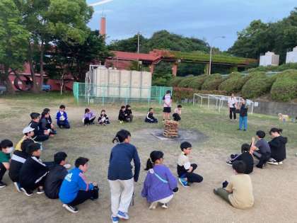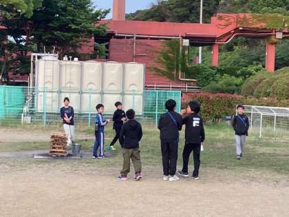 食事も終わり、キャンプファイヤーの準備が始まっています。