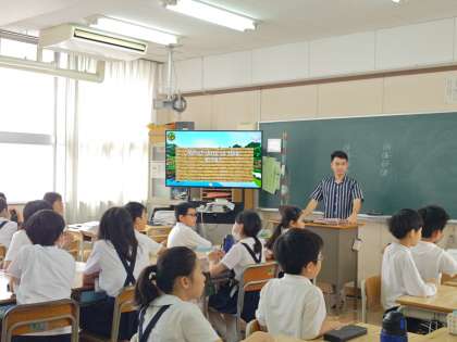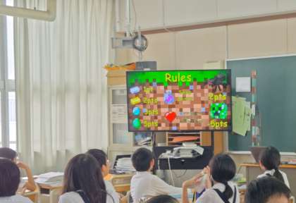 今日は1学期最後だったので『English Review』として,英語で答えるクイズに挑戦しました。3〜4人グループを作り,協力して回答していました。