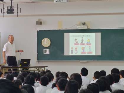 昨年度,難波少年サポートセンターの方から教えていただいた万引きや喫煙などについて復習した後,大麻やSNSに潜む危険性について学びました。