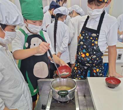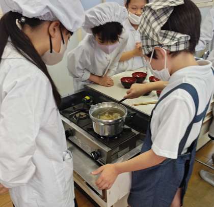 班の仲間と協力して,おいしい野菜スープを作りました。