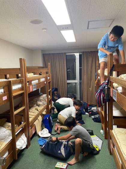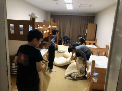 今のうちに荷物や部屋の整理、清掃の準備をしている班もありました。