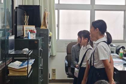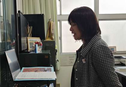 毎週月曜日の朝に、校長室からオンライン朝会を行っています。毎回、校歌を歌った後、校長講話を聞いたり、生活目標を確認したりします。