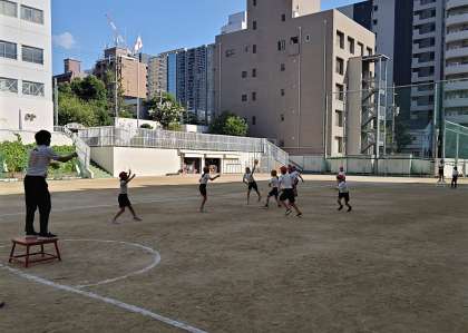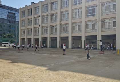 残暑が厳しい中ですが、ピロティーや日陰をうまく利用して「ポートボール」を行いました。