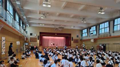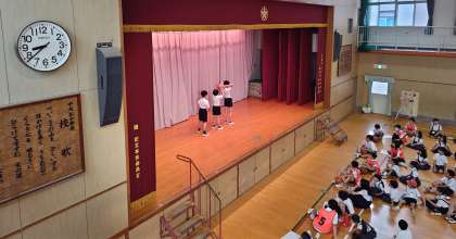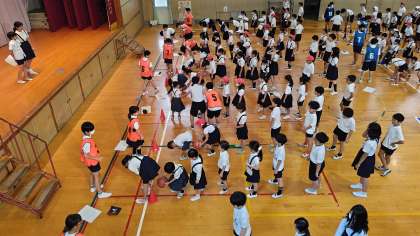 集会委員の説明を聞いて、班の仲間と協力してボールをまわすことができました。