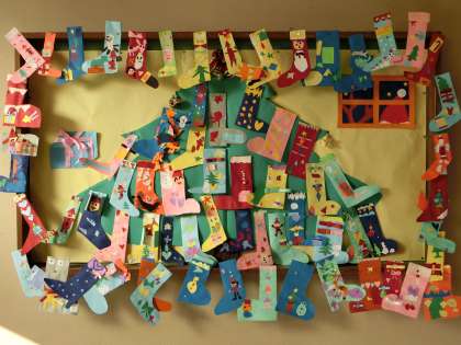 今月の校内掲示板にはクリスマスのかわいい靴下が並んでいます。慌ただしく過ぎていく生活の中で、靴下の大きさのように一日一日と変化していく子どもたちの成長の足跡をしっかりと見つめていかねばと思います。