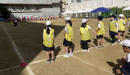 4年生は,全学年の先陣を切ってチームスポーツ「よいしょ こらしょ ひっぱる4!!」を行います。競技中に行う演技も含めて,しっかりと最終確認を行いました。