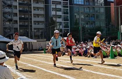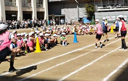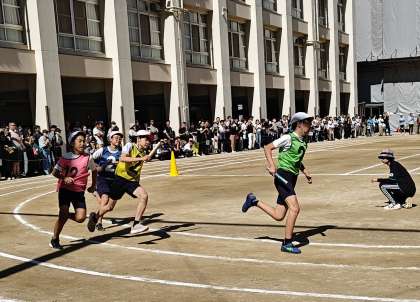 6年生は一人一周ずつ走ってバトンをつなぎました。