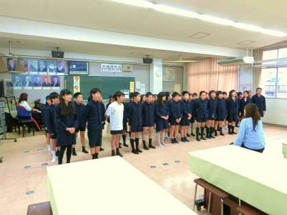 放課後の音楽室からきれいな歌声が聞こえてきました。来週から休まれる先生に、4年生の子どもたちがお礼の気持ちを込めて全員で合唱のプレゼントをしているところでした。先生に対する感謝の気持ちと別れを惜しむ気持ちが素直な歌声に表れていて、周りで聞いていても心が打たれる美しい場面でした。人と人とが心でつながる中大江小学校の素晴らしさを感じました。