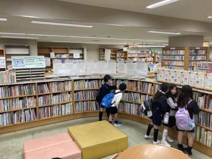 司書さんのお話を聞いたり,図書館の様子を見たりしました。