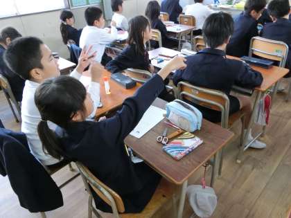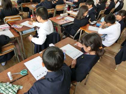 2・3時間目。養護教諭による保健学習が4年1組と2組の教室で行われました。今日のテーマは「わたしは4年生 これまでとこれから」です。はじめに、ある6人の男女の身長の変化を絵や棒グラフで紹介し、それを見て気づいたことを全員で話し合いました。続いて、それぞれの児童の1・2年生と3・4年生との身長の伸びの記録を棒グラフに書き、高学年や中学生へと成長するにつれてどのように伸び方が変化するかを考えました。その予想が当たるかどうかは別にして、どうしてそのように考えたのかという理由もしっかりと発表できていたのには感心しました。