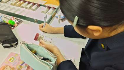 みんな真剣な表情で,各ボーリングの深度や土質名を記録していきました。