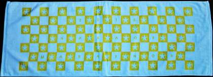 □上:昨年までの手ぬぐいタイプの記念タオル