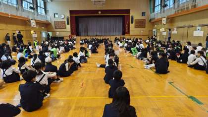 木曜日の朝は色別集会です。昨日,大阪城公園で「全校オリエンテーリング」を行ったところですが,今朝もいつもどおりに集会を行いました。