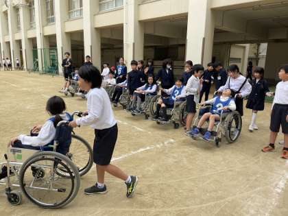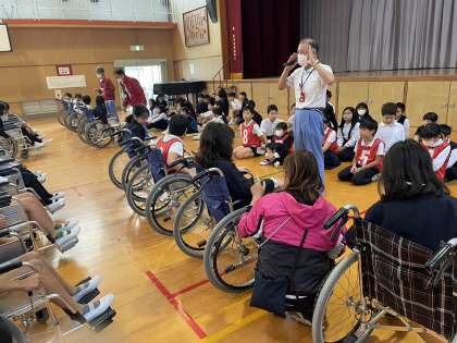 大阪市心身障害者リハビリセンターの方に来ていただき、車いす体験を行いました。
