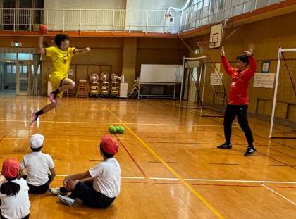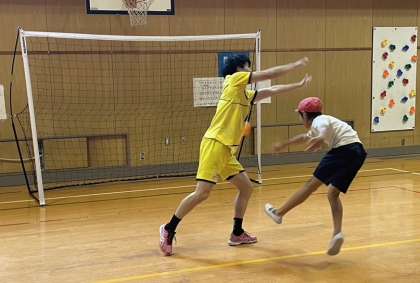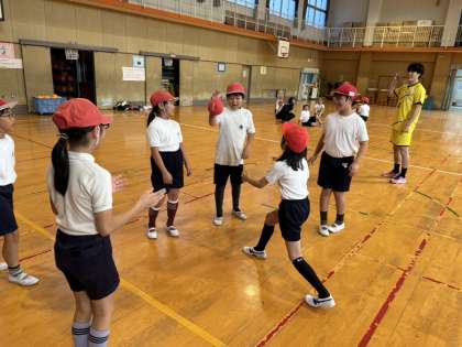 今日は、基本的なドリブルから、応用の「ジャンプシュート」を教わりました。最後には、ジャンプシュートを含めたドッジボールを行い、一生懸命運動に励みました。