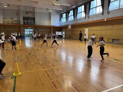 外部から講師の先生に来ていただき,講堂で「体力向上支援事業」を行いました。