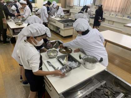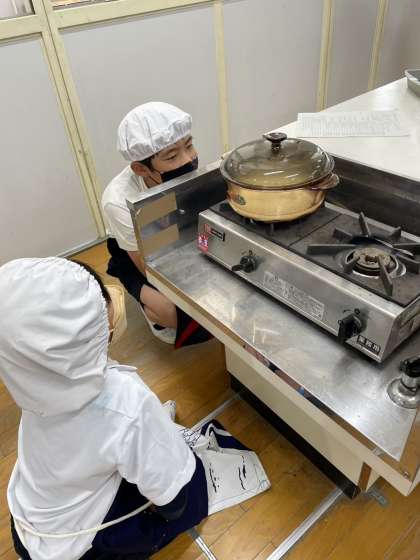 調理実習で、ご飯を炊いて、味噌汁を作りました。