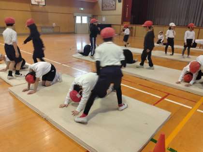 12月19日(木)1年生 体育「とびばこ あそび」