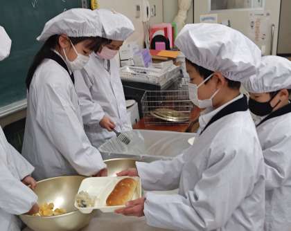 パンと小おかずは,自分で並んで,当番さんにお皿に入れてもらいます。
