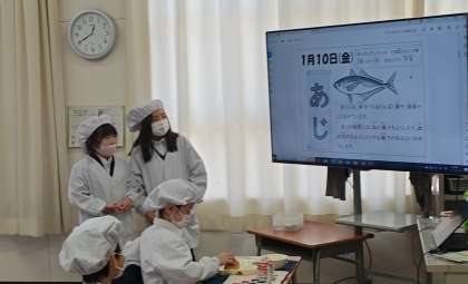 配膳が終わったら,日直さんがメニューの紹介をして「いただきます」をします。